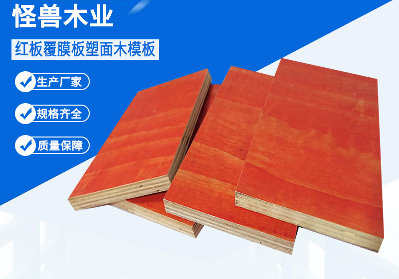怪獸木業(yè)生產(chǎn)的桉木小紅建筑模板建筑模板采用的松木、桉木、雜木等全整芯板芯板,每層板芯,層層過膠,經(jīng)冷壓熱壓,二次成型,壓制而成,板材鋸開后中間無空洞,表面涂層為防水性能的酚醛樹脂膠耐用高次數(shù)。